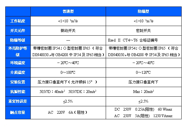 505/7D防爆壓力開關(guān)用于含油霧的中性氣體。